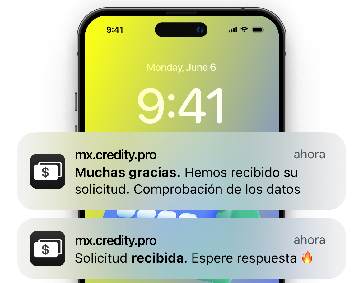 Los “Términos y Condiciones” y “Política de privacidad” de mx.credity.pro, se aplican al uso de este sitio y sus servicios. mx.credity.pro conecta a los solicitantes de préstamo con los prestamistas de la red de mx.credity.pro y se aplicarán términos y condiciones específicos del socio prestamista específico a cualquier préstamo que solicite un prestatario. Los servicios de mx.credity.pro son unicamente administrativos y de consulta. El uso del sitio mx.credity.pro y sus servicios son gratuitos. Cualquier presentación de Tasa Anual, montos de préstamos, tasas de intereses u otros detalles del préstamo son proporcionados solamente por los socios prestamistas y pueden estar sujetos a cambios. El socio de préstamo con el que conecta el solicitante de préstamo puede no ofrecer los mejores términos posibles y los solicitantes de préstamo deben comparar todas las opciones disponibles antes de tomar cualquier decisión. mx.credity.pro no es un prestamista y no gestiona u otorga préstamos o decisiones crediticias. Este sitio no constituye una oferta o solución de prestación. La aprobación de un préstamo no está garantizada. La Tasa Anual de un préstamo personal varía dependiendo del prestamista, y algunos proveedores ofrecen tasas del 12% a 1,500% y duraciones de préstamo entre 91 días y 48 meses. Si le ofrecen un préstamo, tendrá la oportunidad de revisar la oferta final hecha por el prestamista o el socio prestamista y aceptar su contrato de préstamo. Ejemplo representativo: si pide prestado $ 10,000 en una Tasa Anual de 12% con un plazo de reembolso de 6 meses, el reembolso mensual será de $ 1,732.98. El reembolso total será de $ 10,397.88